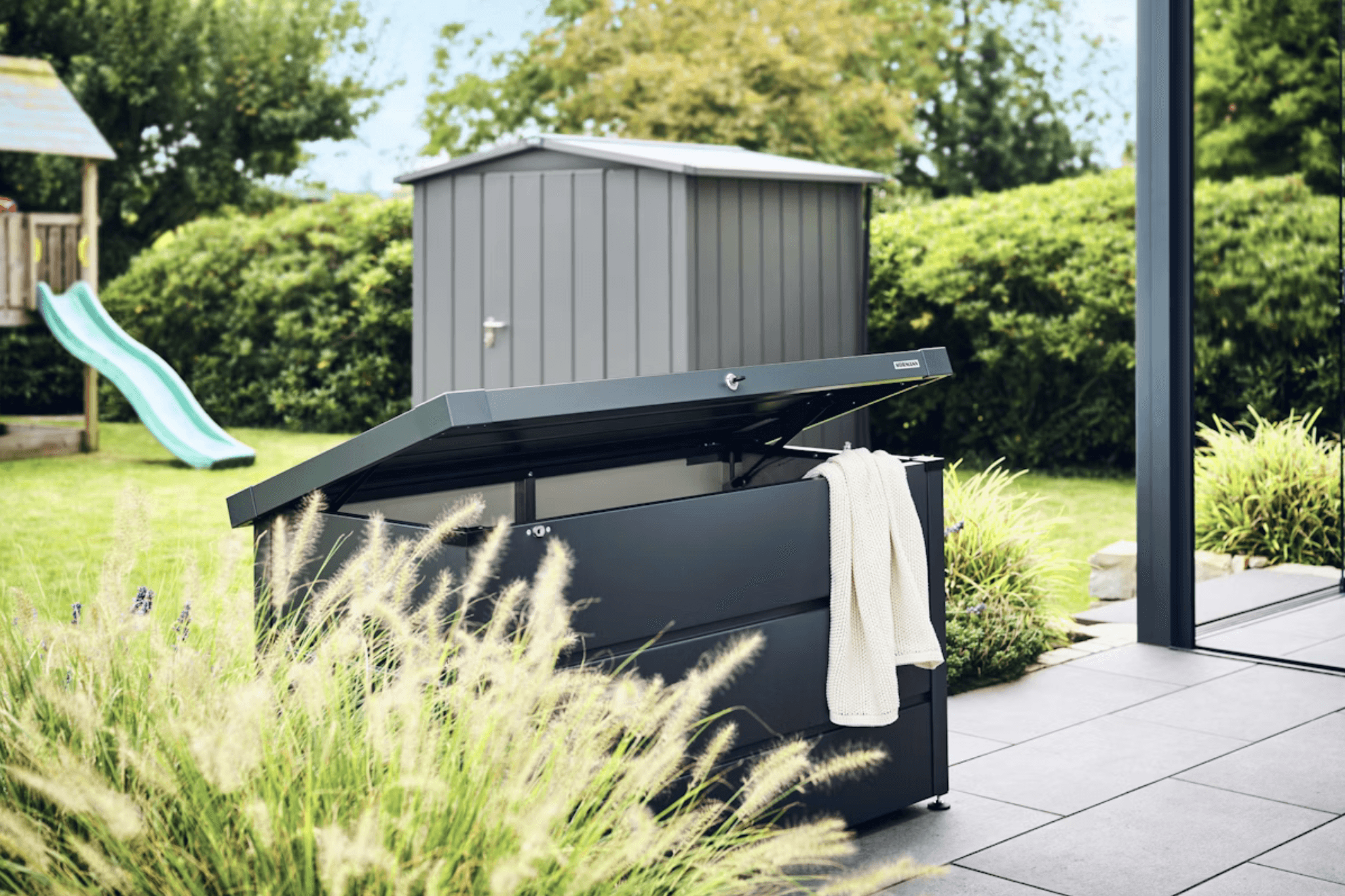 Weerbestendige kussenopslag met geïntegreerd slot, slechts €535.